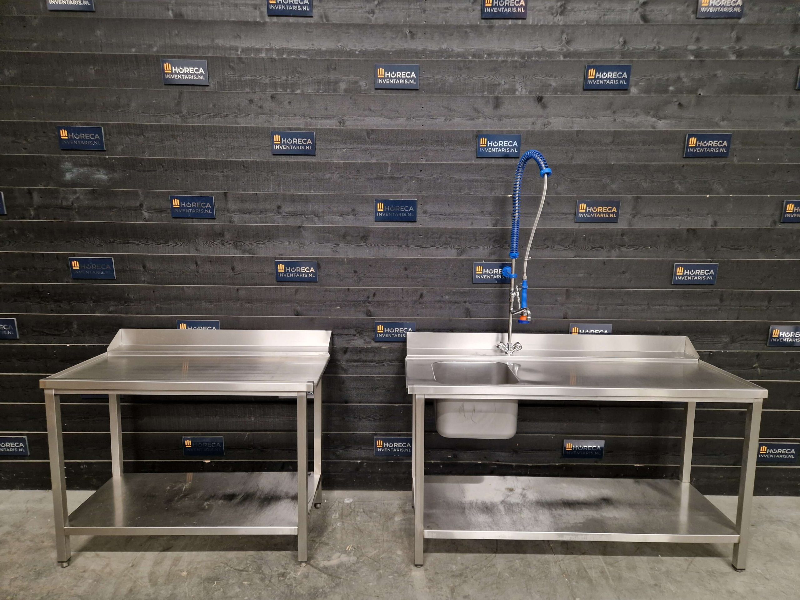 De tafels zijn vervaardigd uit hoogwaardig RVS, wat zorgt voor duurzaamheid, eenvoudige reiniging en een professionele uitstraling. Beide tafels zijn voorzien van een onderligger, ideaal voor het praktisch opbergen van vaatwasmanden, kratten en andere horecabenodigdheden.