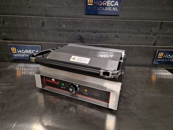 De CaterChef contactgrill Solo-Grande (type 688405) is een krachtige en betrouwbare grill, perfect voor het bereiden van panini’s, vlees, groenten en andere gegrilde gerechten. Dankzij het robuuste ontwerp en het hoge vermogen van 2200 watt (230V) is deze grill uitstekend geschikt voor professioneel gebruik in horecaomgevingen.