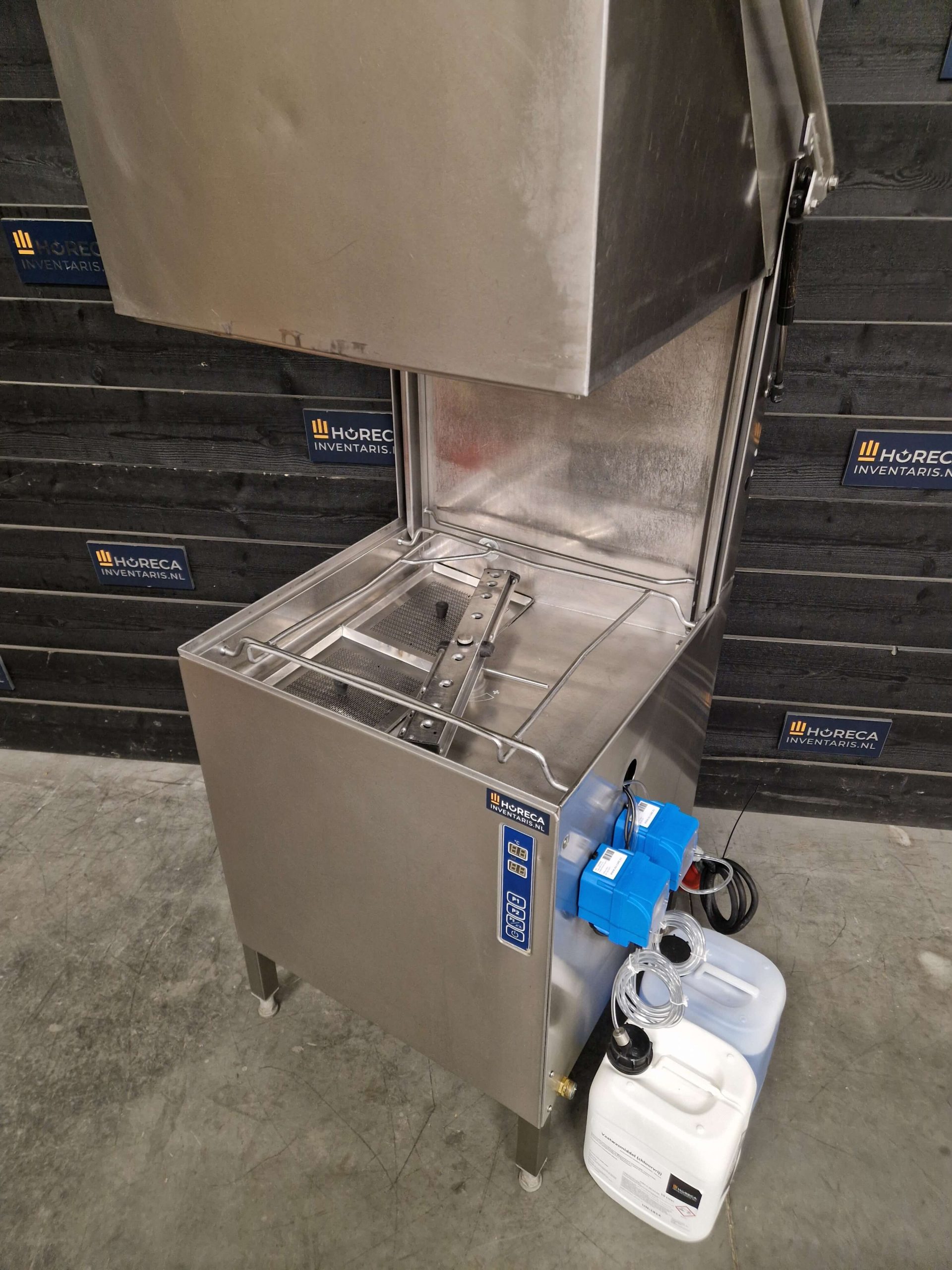 De vaatwasser werkt op 400V en heeft een vermogen van 10.800 Watt (10,8 kW). Dankzij de geïntegreerde opvoerpomp is de machine flexibel te plaatsen, ook wanneer de afvoer hoger ligt. Wordt compleet geleverd met 10 liter kannen zeep en naglans, direct klaar voor gebruik.