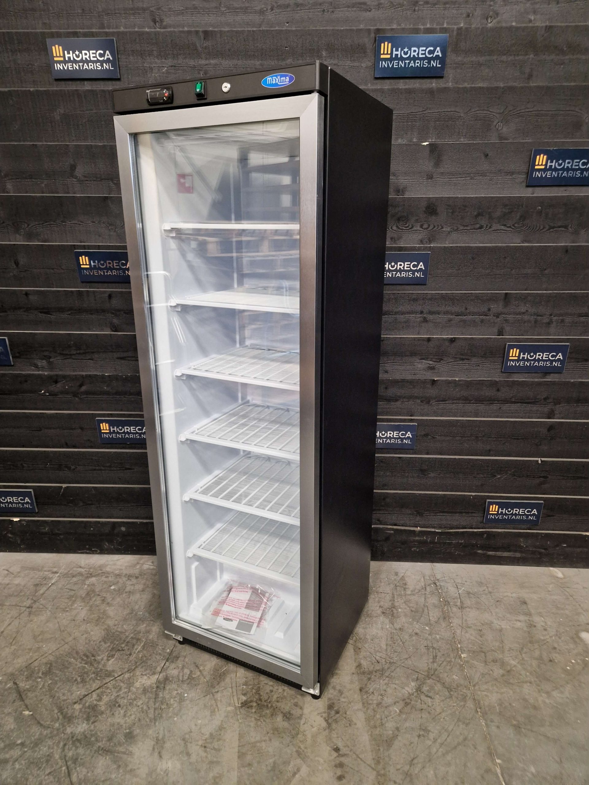 De vriezer beschikt over zes vaste roosters voor voldoende opslagruimte en optimale ventilatie. De glazen deur met slot maakt het mogelijk om producten te bekijken zonder de vriezer te openen, waardoor de temperatuur stabiel blijft.