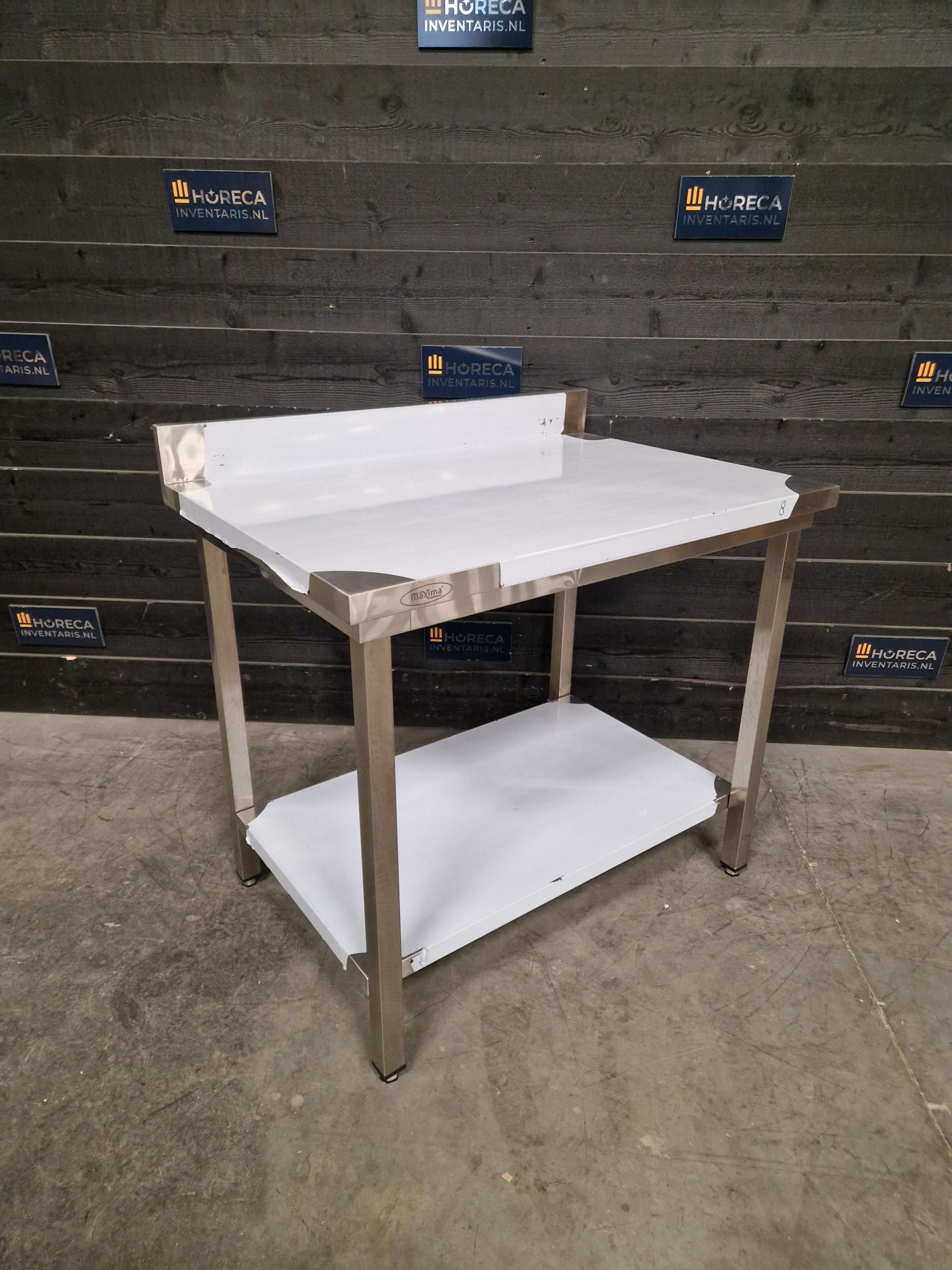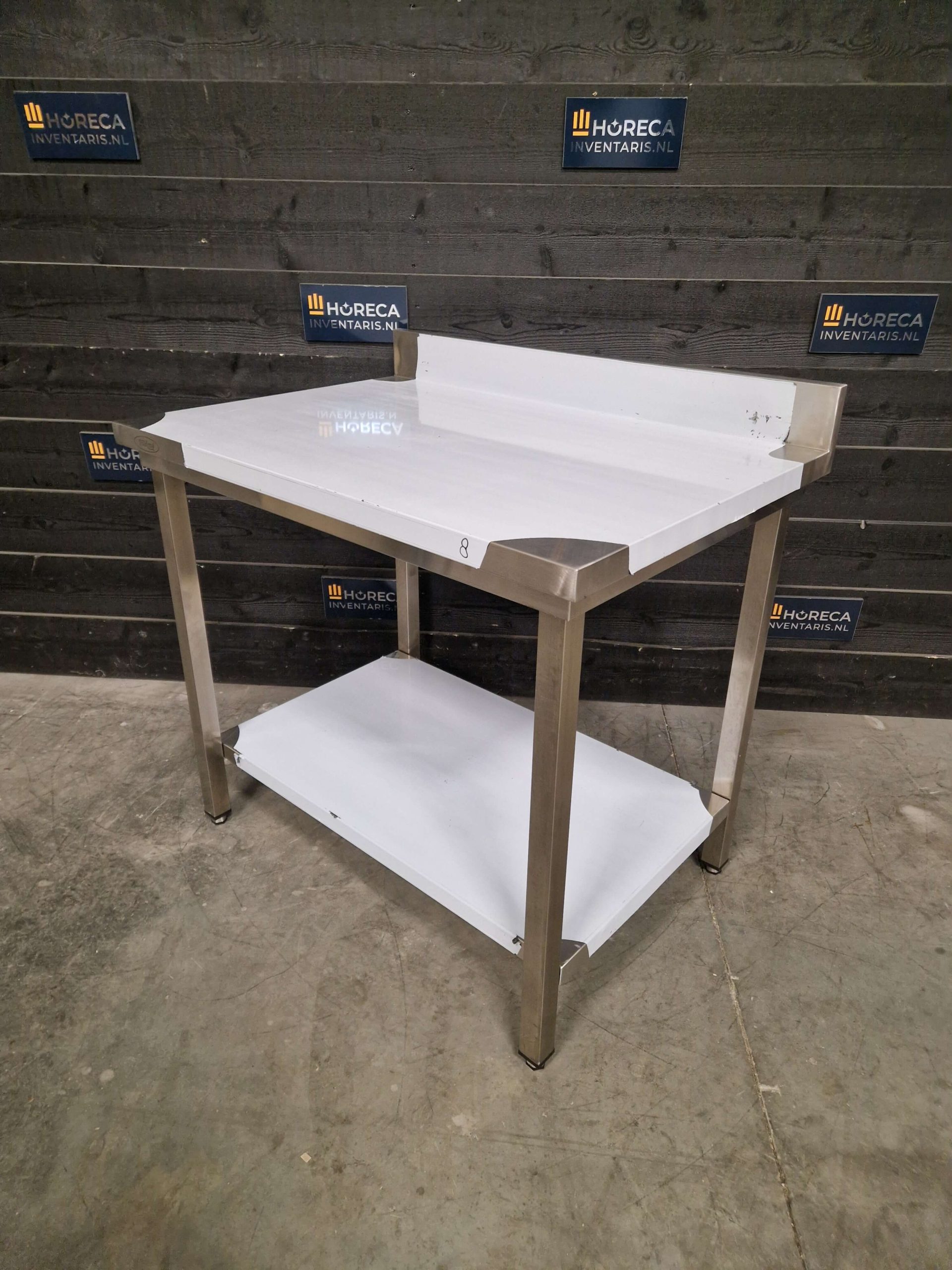 De tafel is voorzien van een praktische onderligger voor extra opbergruimte. Daarnaast beschikt het werkblad over een opstaande rand aan de achterzijde, wat helpt om spatten en vuil tegen te houden en te voorkomen dat items van de tafel vallen.