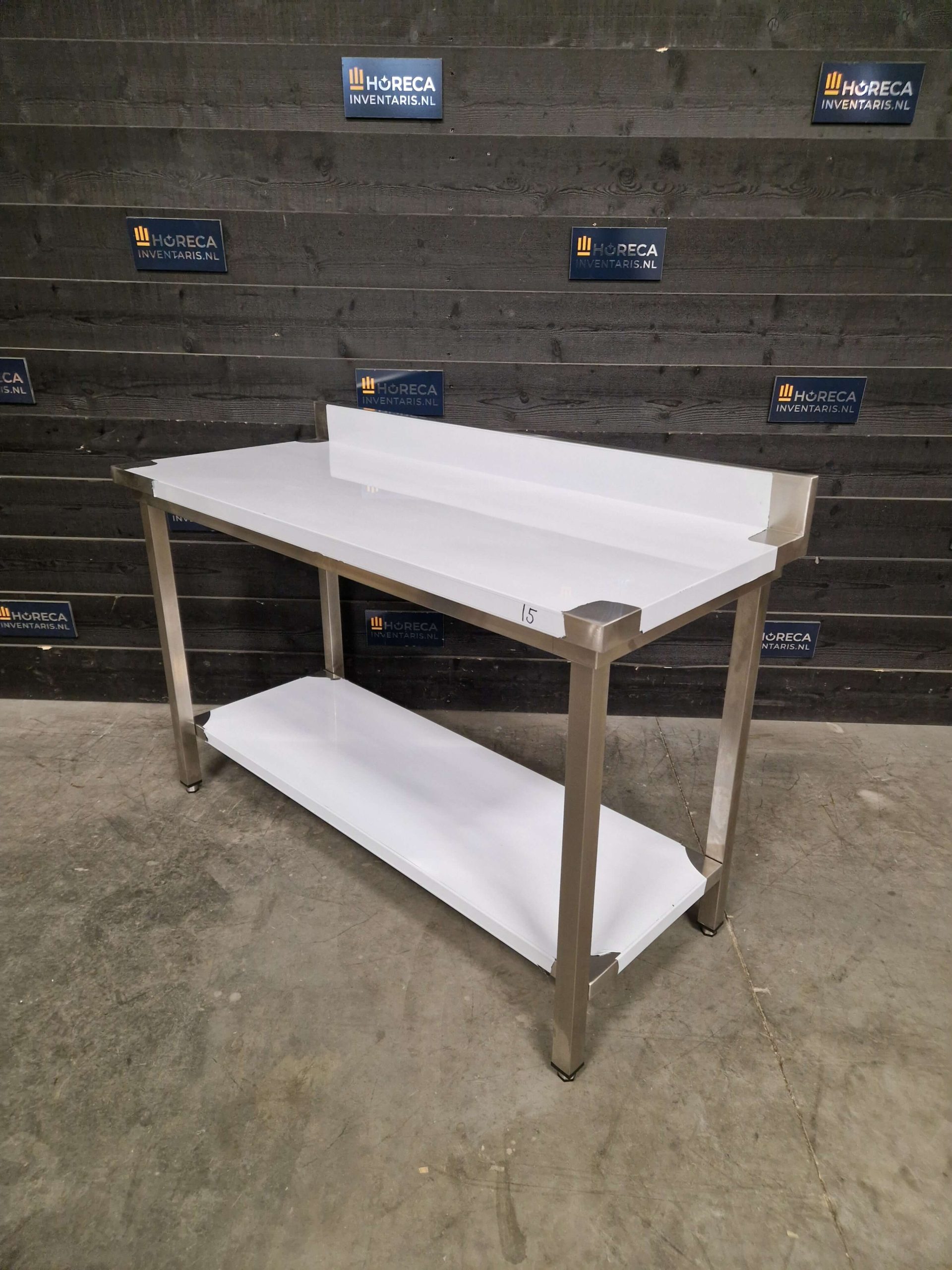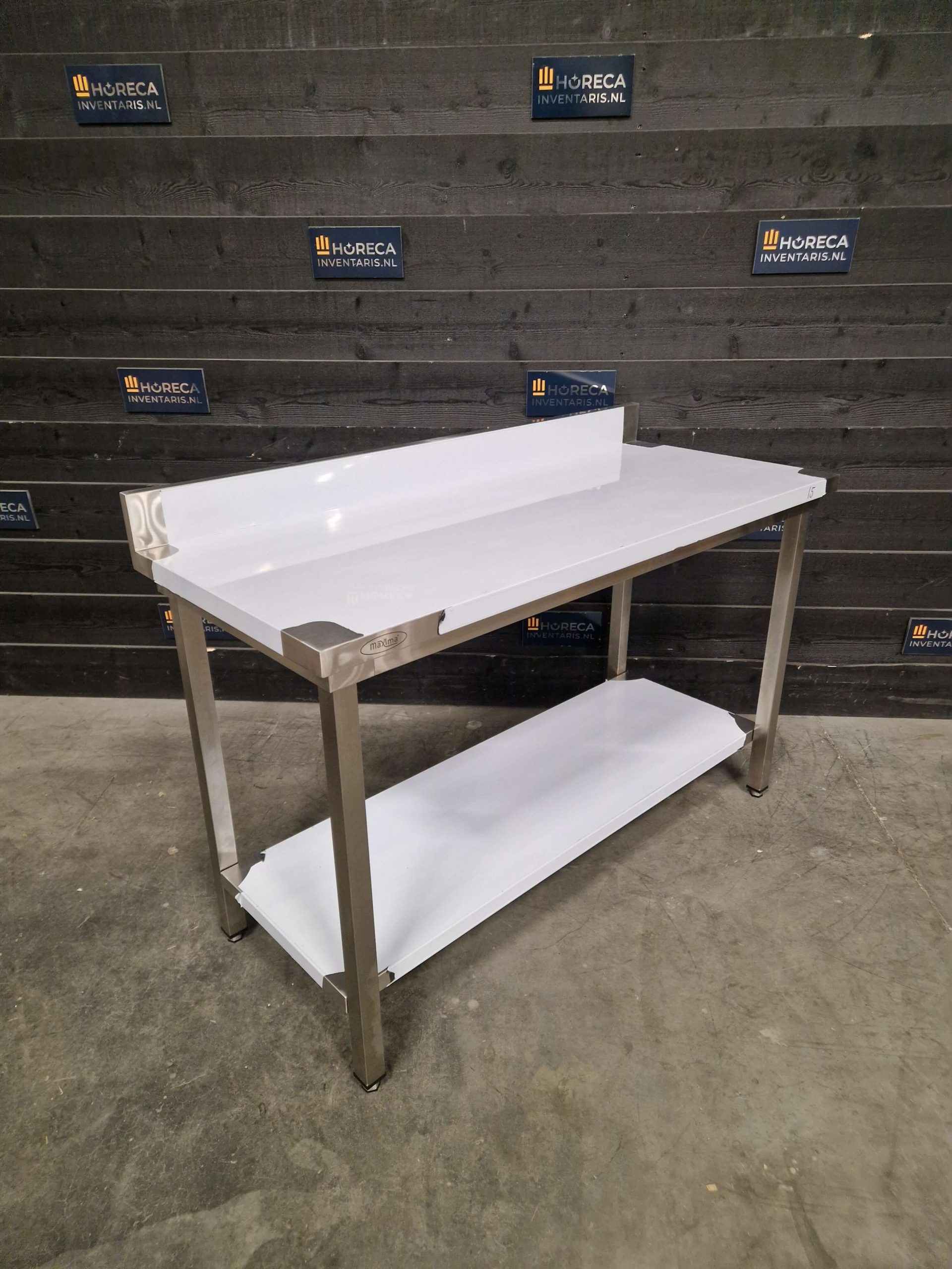 De tafel is voorzien van een praktische onderligger voor extra opbergruimte. Daarnaast beschikt het werkblad over een opstaande rand aan de achterzijde, wat helpt om spatten en vuil tegen te houden en te voorkomen dat items van de tafel vallen.