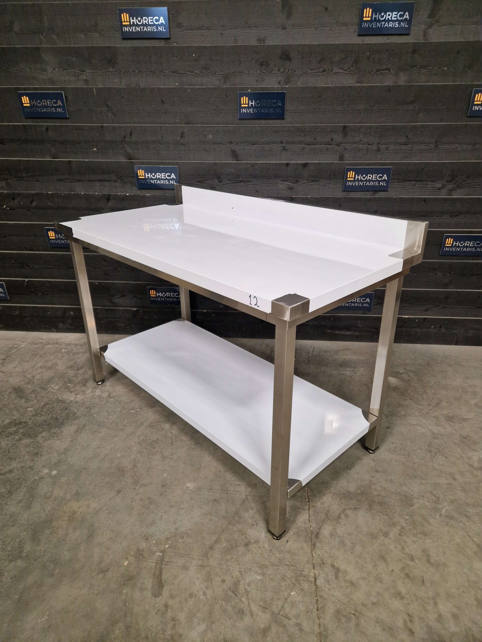 De tafel is voorzien van een praktische onderligger voor extra opbergruimte. Daarnaast beschikt het werkblad over een opstaande rand aan de achterzijde, wat helpt om spatten en vuil tegen te houden en te voorkomen dat items van de tafel vallen.