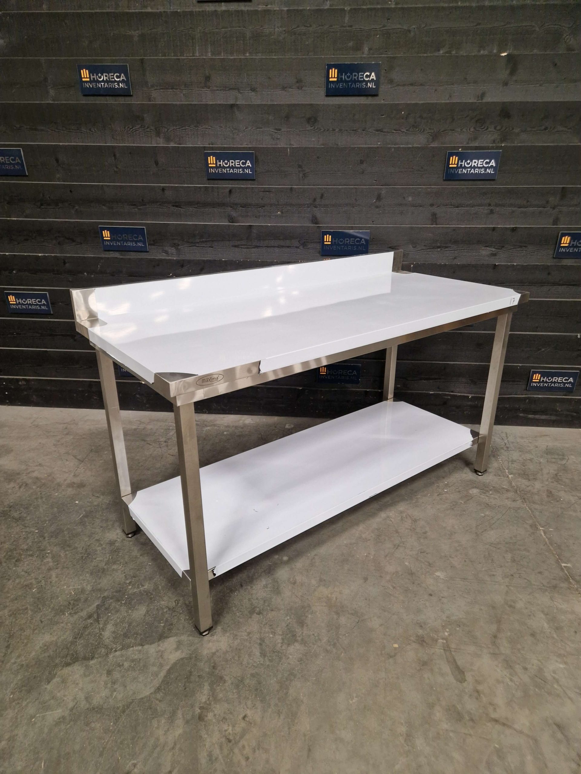 De tafel is voorzien van een praktische onderligger voor extra opbergruimte. Daarnaast beschikt het werkblad over een opstaande rand aan de achterzijde, wat helpt om spatten en vuil tegen te houden en te voorkomen dat items van de tafel vallen.